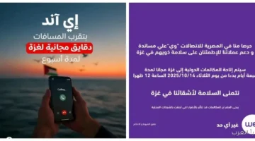 “وي” و”إي آند مصر” تتيحان للمستخدمين مكالمات دولية مجانية إلى غزة لمدة أسبوع